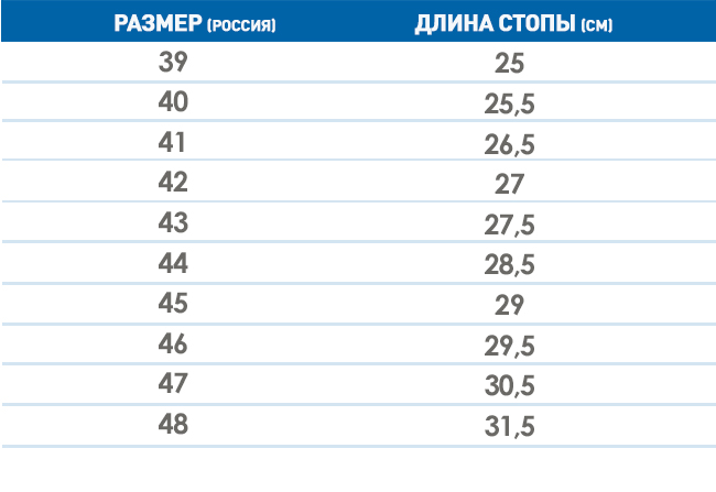 Таблица соответствия размеров мужской обуви