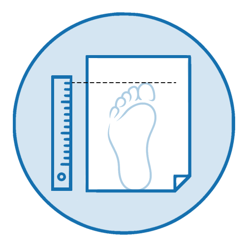 Сделайте метку на бумаге где заканчивается кончик большого пальца. Повторите процедуру с другой ногой.