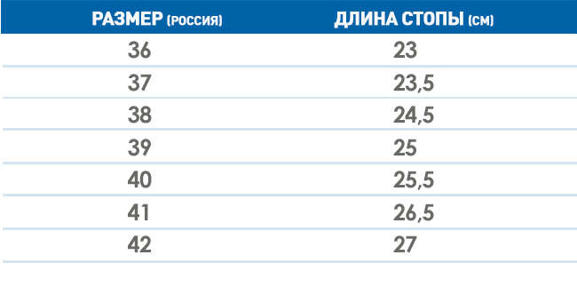 Таблица соответствия размеров женской обуви